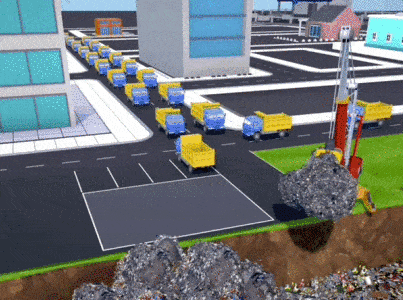 通过“财务损失”来营造紧迫感,展示垃圾工厂因无法从河流中回收垃圾而导致的经济损失。音效中加入了报警声,突出危机感。